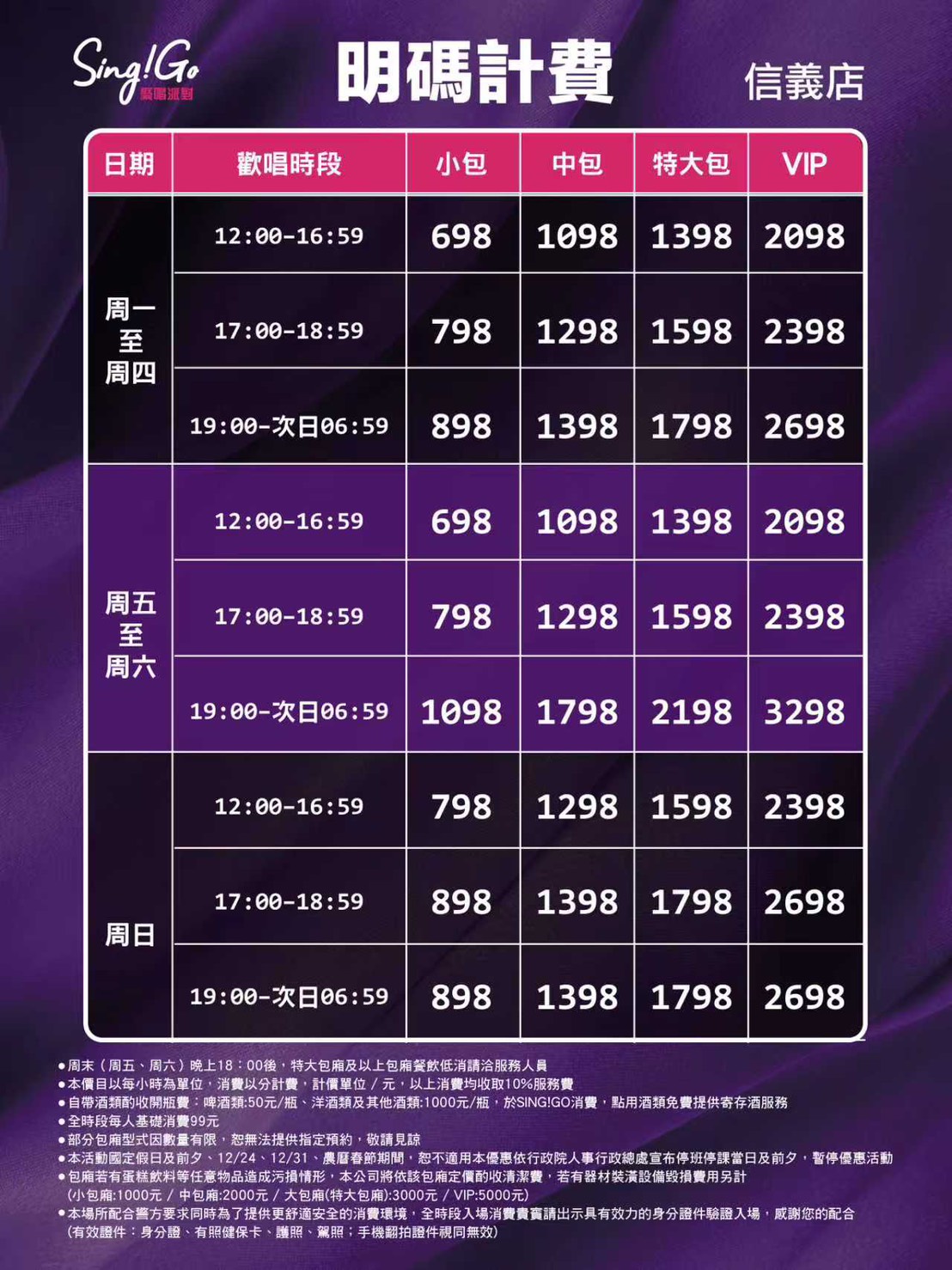 週五及週六16:00-20:00進場小、中包廂凡點用指定火鍋套餐另加價1000元即可歡唱2小時