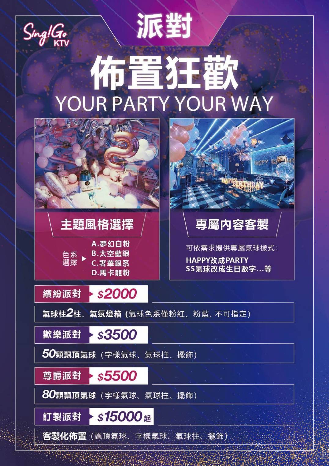 包廂氣球佈置 15000元客製化佈置,完全依照自己想法佈置,不限氣球+23字內各式英文數字字幕+精美擺飾