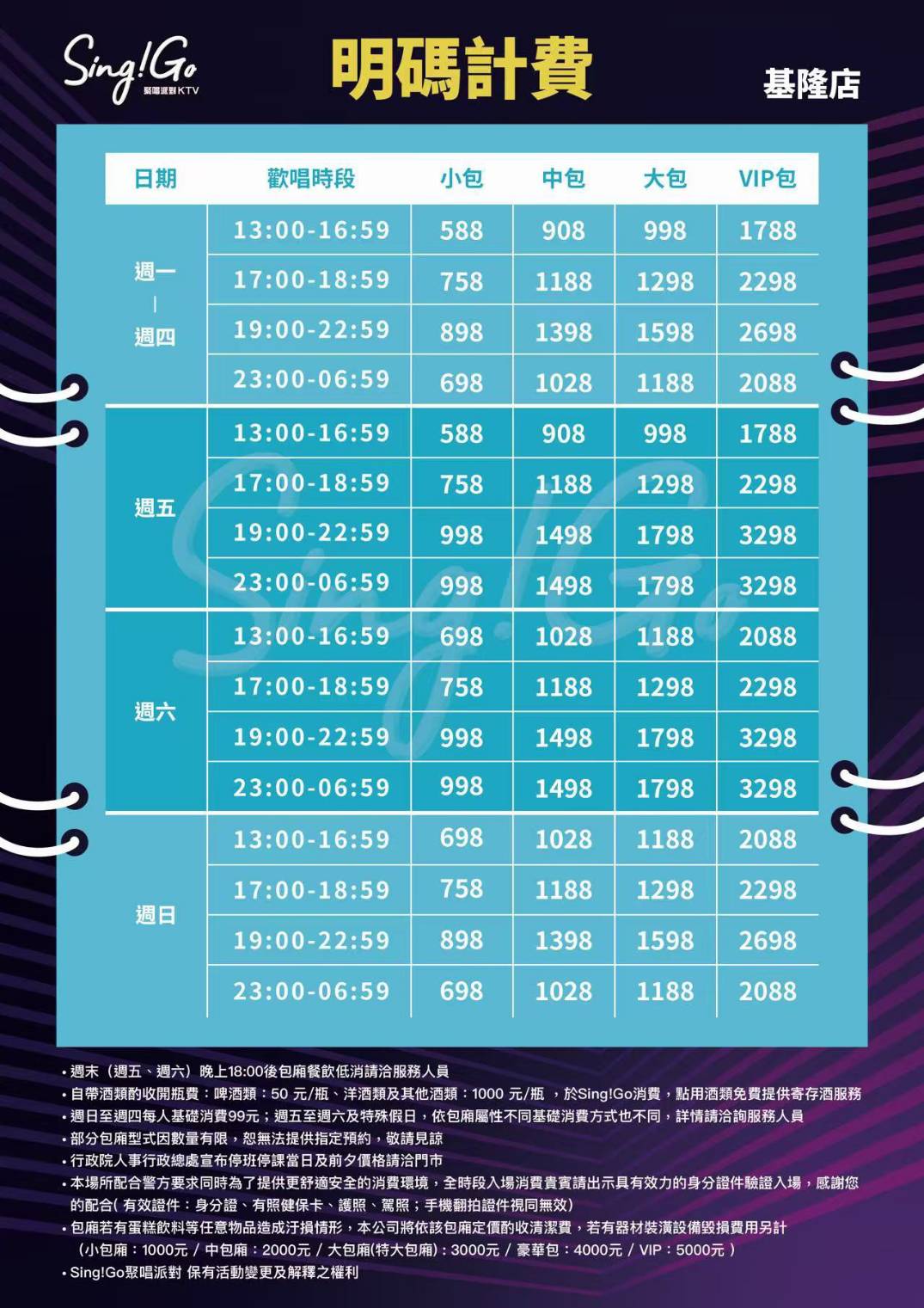 Sing go聚唱派對 · 基隆中正店,身為本公司2026最新第五分店,身處基隆市重鎮鬧區,鄰近基隆港區及基隆廟口夜市為在地基隆市居民提供最新最方便的唱歌好去處,也是基隆最新室內娛樂的最佳選擇,所有包廂皆有廁所,全新設備平板點歌點餐